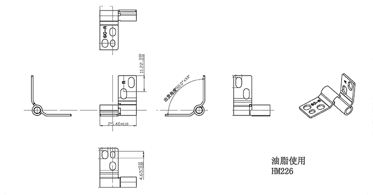 烤箱阻尼转轴技术要求: 1.产品扭力要求:上下转轴都为6.5±0.5kgf-cm 2.旋转角度:0度~90度 3.产品寿命要求30000次(速度12次/分钟),衰减率不大于20% 4.所有加工工艺都需符合环保要求 5.带*号尺寸为管制 | |