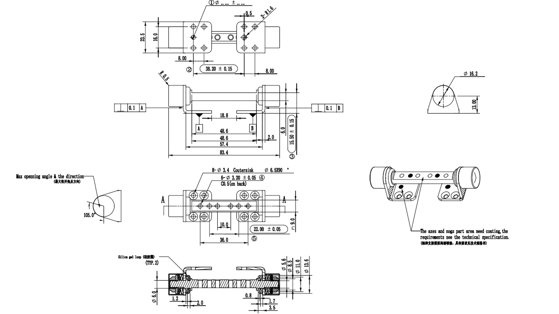 *.铰链组件按GB/T2423.4进行10天交变盐雾试验