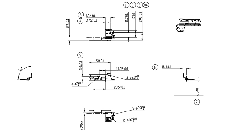 规格: 旋转角度0-135度±5度,出货角度120±3度