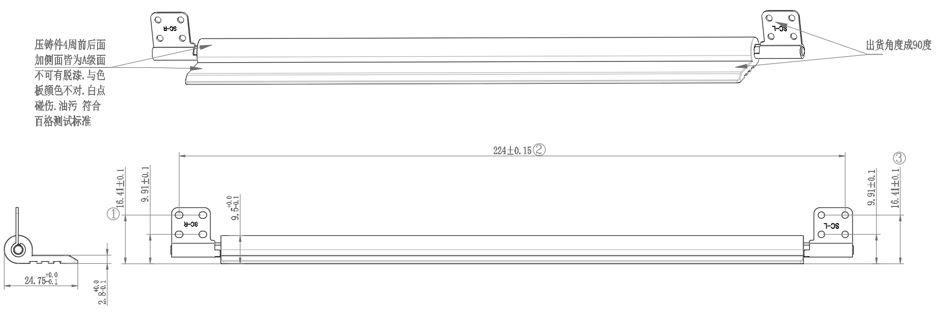 2.出货角度:90±2°,限位角度:90±5°