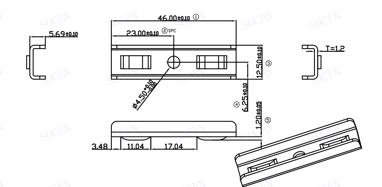 5.标示长为重点管控尺寸SPC为CPK管控尺寸未标注角度为: 90土0. 5°