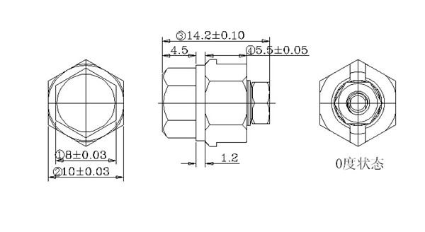 底座转轴技术要求 1.产品扭力为:平稳力1.5±0.3kgf.cm 2.产品旋转角度为360度,0度/±30度有自锁手 感,出货角度为如图示0度 3.寿命测试10000次,衰减率为20% 4.所有工艺需符合ROSH要求 |