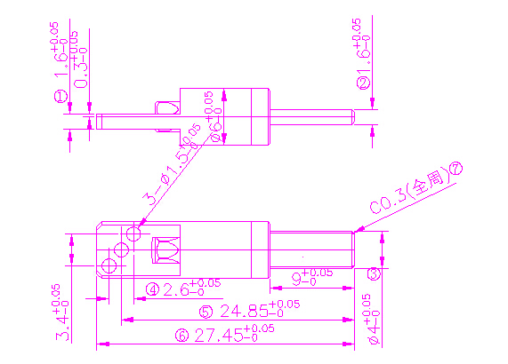 转轴组成分为五金件和车制件五金件通过精密模具管控尺寸车制件通过CNC加工中心管控尺寸,可使转轴外径做到3mm,产品精度可达正负1个丝。