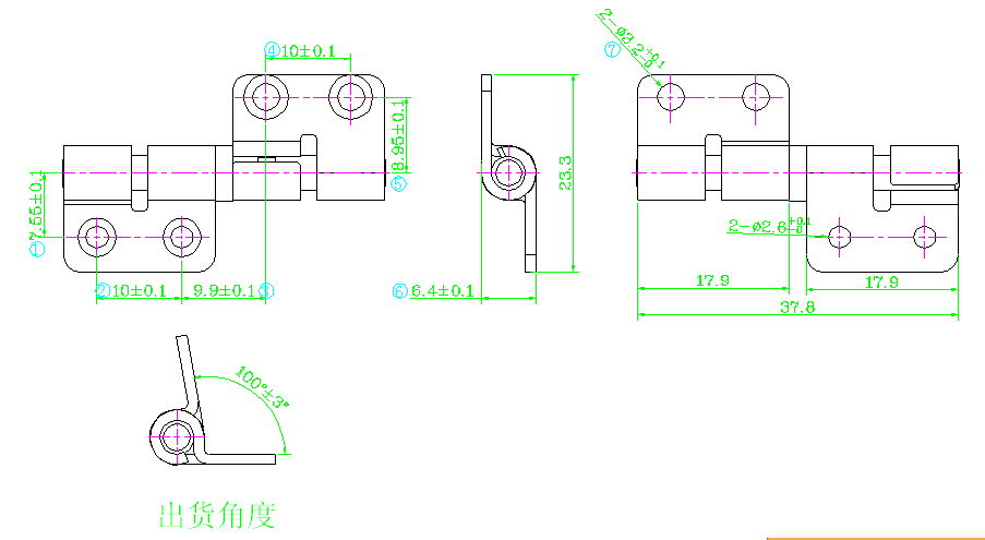 阻尼转轴技术要求: 1、产品扭力为:9.5-12.5kgf.cm 2、产品旋转角度为360度,出货角度为100° 3、寿命测试10000次,衰减率为20% 4、所有工艺需符合ROHS要求 | |