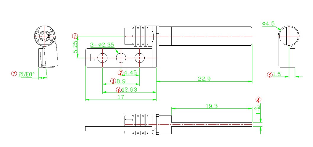 360度旋转笔记本转轴技术要求: 1.平稳力为0.8±0.2kgf-cm 2.寿命测试5000次衰减率不大于20% 3.产品旋转角度为0~360度,-6度自锁 4.出货角度为-6度 5.所有工艺需符合ROHS要求 6.标示 为重点管控尺寸 |