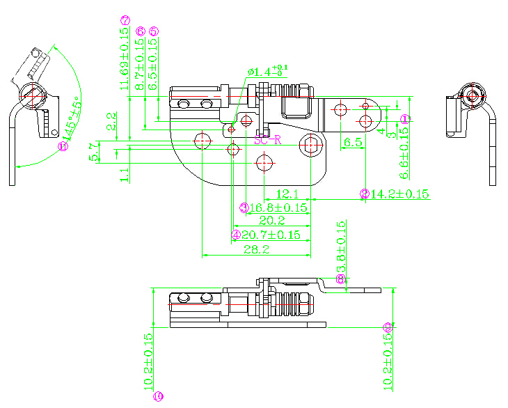 笔记本转轴技术要求: 1.产品表面(含孔)不能有毛刺,油污,生锈等不良现象 2.产品平稳力为6.0±0.5kgf-cm 3.寿命测试1万次,衰减率不大于20% 4.产品旋转145±5度,预压8度,出货角度为145度 5.所使用材料,加工工艺需符 合ROHS规定 6.标示"*"为重点管控尺寸 |
