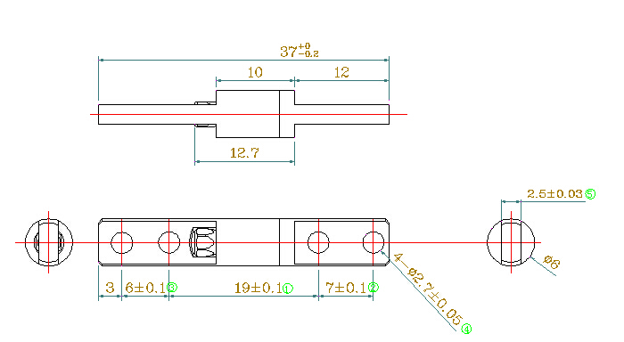 一字阻尼转轴技术要求: 1.表面光洁无毛刺 2.转轴扭力值为5.0-6.0kgf.cm 寿命测试5000次,浮动率低于15% 3.转轴可旋转角度为360° 出货角度为0° 4.所使用材料,加工工艺需符合ROHS要求 5.标示"*"为重点管控尺寸 |