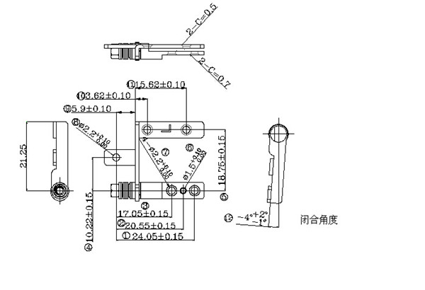 电脑显示屏转轴技术要求: 1.产品表面及内孔光洁无毛刺 2.转轴扭力值为3.0-3.8kgf.cm 寿命测试15000次,浮动率低于20% 3.产品工作角度360°,-4°~176°自动闭合, 出货角度为90±2° 4.所使用材料,加工工艺需符合ROHS要求 5.标示"*"为重点管控尺寸