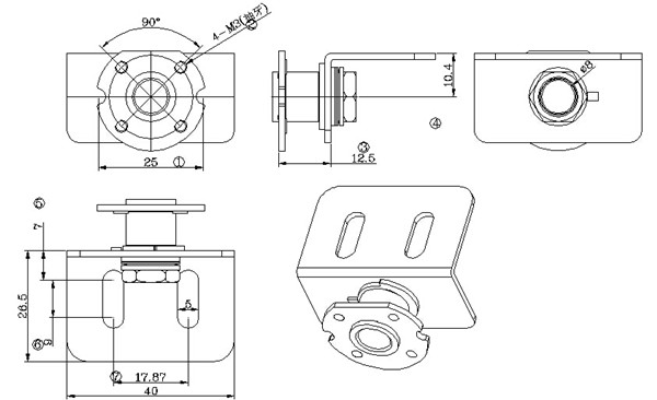 规格: 转动角度:±90度旋转 .出货角度为0度(如图示)