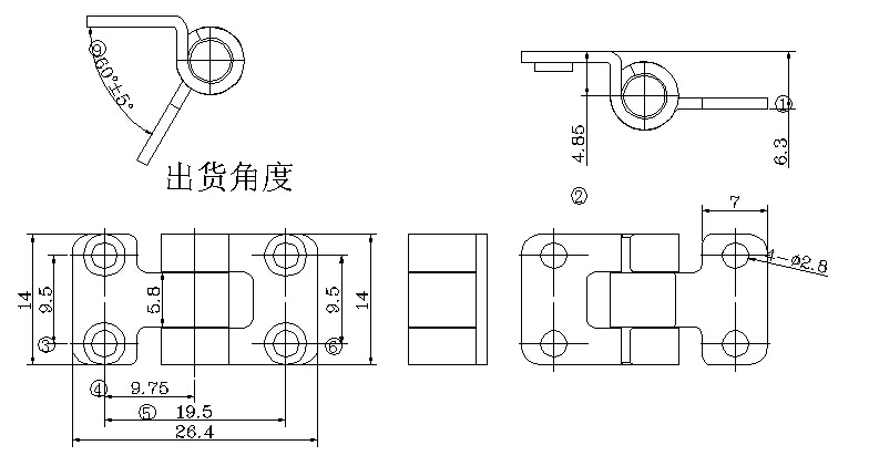 阻尼转轴技术要求: 1.产品扭力为:小扭力4.0±0.3kgf.cm 2.产品旋转角度360度,出货角度如图示60度 3.寿命测试10000次,衰减率为百分之20 4.所有工艺需符合ROSH要求 | |