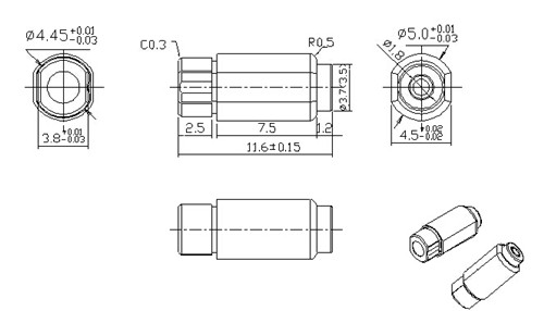 转轴组成分为五金件和车制件五金件通过精密模具管控尺寸车制件通过CNC加工中心管控尺寸,可使转轴外径做到3mm,产品精度可达正负1个丝。
