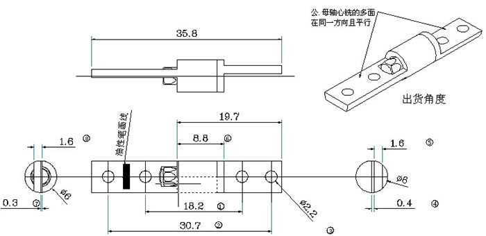 3.转轴可旋转角度为360° 出货角度为0° 转轴图纸