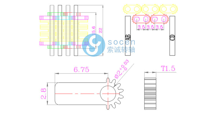 转轴组成分为五金件和车制件五金件通过精密模具管控尺寸车制件通过CNC加工中心管控尺寸,可使转轴外径做到3mm,产品精度可达正负1个丝。