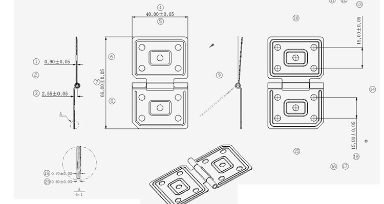 130度平板皮套转轴技术要求: 1.产品材质为钢,表面电镀银色 2.带自锁功能结构,0~130度打开,需限位 3.扭力要求:过虚位卡点后扭力值为4±0.5kgf.cm(扭力要求均匀),0~130度转动测试250000次后(4次/min)扭力达到2.8kgf.cm以上; 4.所用材料符合ROHS标准要求; 5.盐雾测试8小时不生锈; 6.带“*”号标示为必检尺寸,其他未注按常规标准,未注利角R0.2; 7.产品不能有油污,刮伤,变形等现象 |
